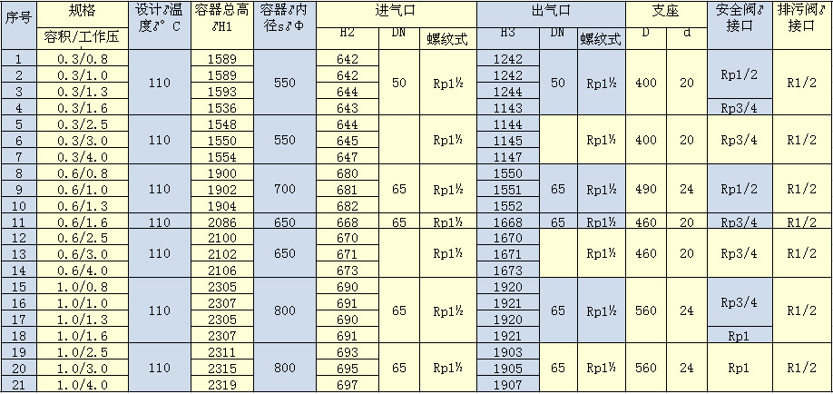是專門用于儲存壓縮空氣的壓力容器,主要用于存氣緩沖,同時起穩定系統壓力的作用,避免空壓機頻繁加卸載和除掉大部分的液態水,主要與壓縮機、冷凍式干燥機、過濾器等設備配套使用,組成工業生產上的動力源壓縮空氣站。